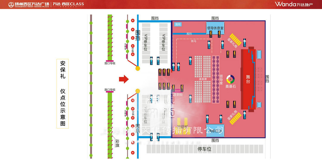 l 場地劃分: 根據場地條件, 結合活動內容, 潤州將活動場地劃分為: 外場區、 迎賓區、