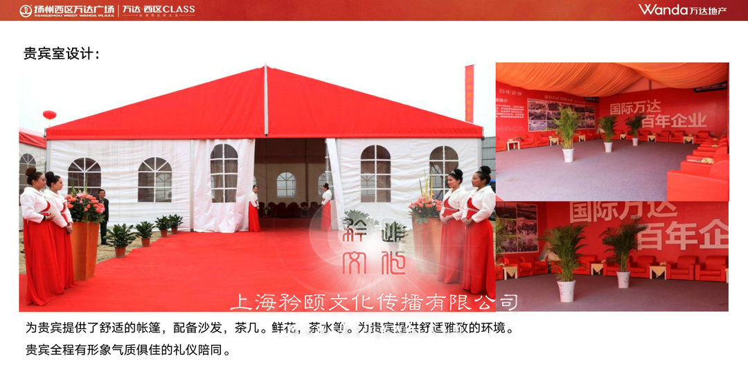 為貴賓提供了舒適的帳篷, 配備沙發, 茶幾。 鮮花, 茶水等。 為貴賓提供舒適雅致的環境。