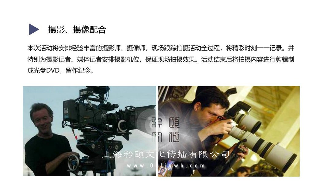 5.活動支持,攝影攝像、現場直播、TVC拍攝、媒體宣傳、餐飲外燴、車輛租賃、同聲傳譯、化妝師等